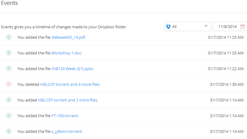 3) Events: Within Events, I can monitor any changes made on the dropbox folders by anyone linked. Most important, I am able to restore any documents or folders that someone deletes them without caution.